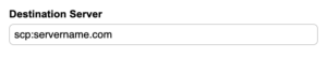 For example, if your destination is ‘servername.com’ and you want to use secure copy, you should type ‘scp:servername.com’.