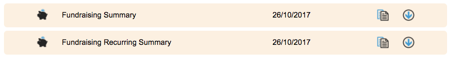 Out of the box, you can run two fundraising data report types: