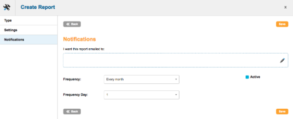 You will need to choose the email address, set a frequency, and a day that you want the report to run. Tick the “active” box to schedule the automated report and save.