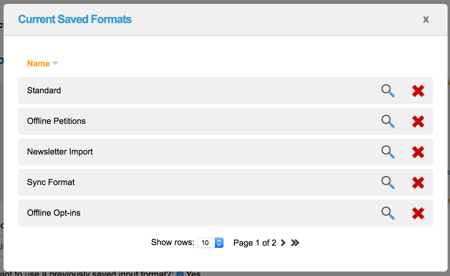 Saving the format allows for the mapping process to be bypassed for future imports as the columns will be mapped the same. Saved import formats can be used for imports done from the front end of Engaging Networks and imports done using the import API.