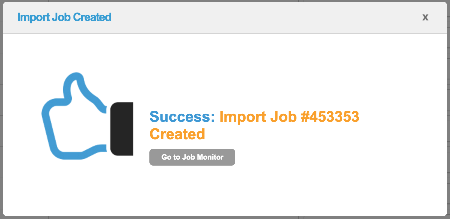 Once confirmed, a job number will be displayed corresponding to that import.