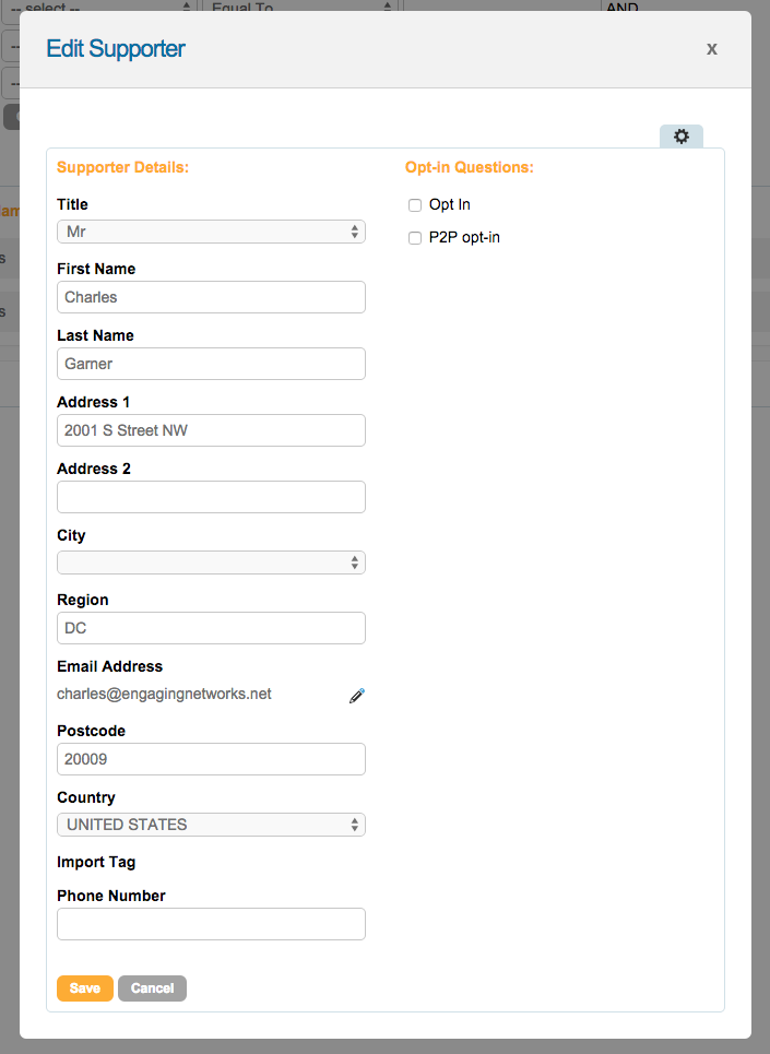 Fill in the supporter’s information and click “Save” to add the record to your database.