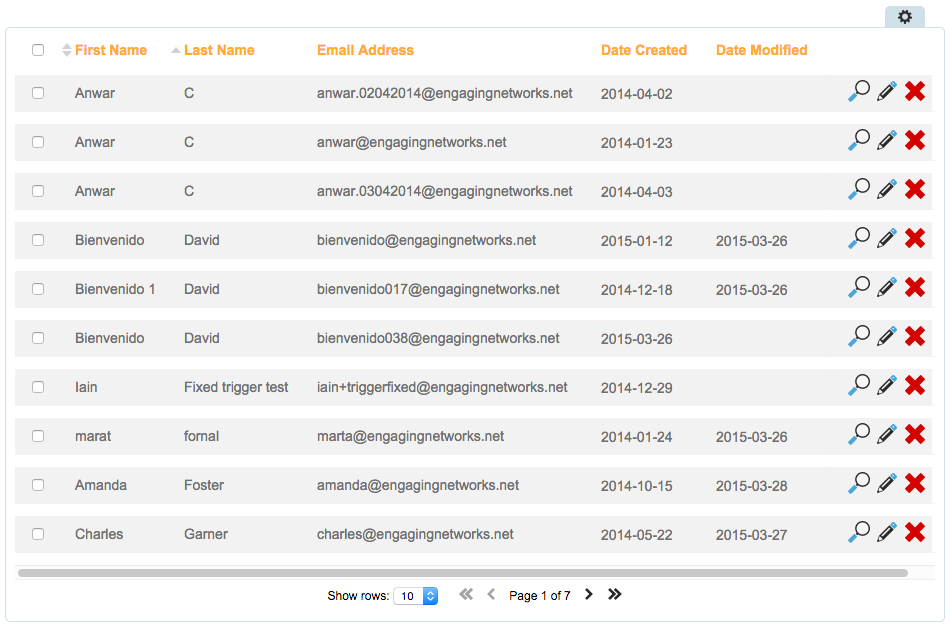 If you want to delete a supporter record from your account simply click on the “Delete” icon