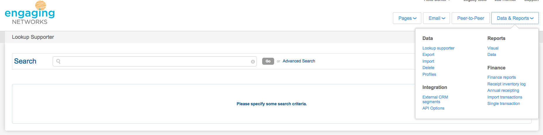 This help file will take you through the steps on how to search for and subsequently manage your supporter data.