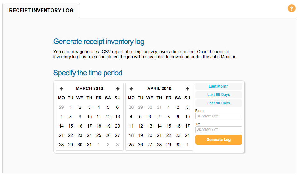To process a Receipt Inventory Log, go to Data & Reports > Receipt Inventory Log