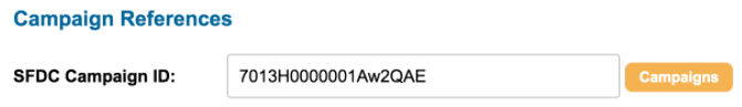 To enable Campaign References, go to Hello > Account Settings > Account Preferences > Campaign References > check box next to the first to enable > set label as “SFDC Campaign ID”
