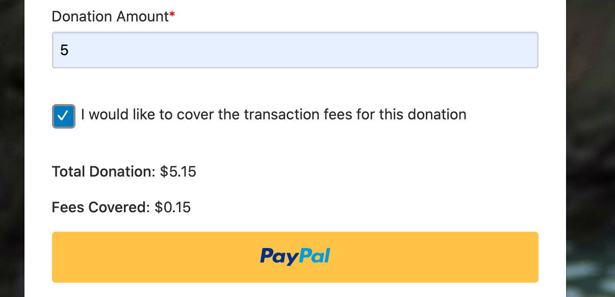 The Fee Cover form field allows you to encourage supporters to opt to cover processing fees associated with their donation. The form field is available to use with any fundraising page type, as well as an Event page with payment required.