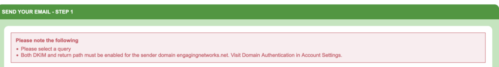 You can check some of these authentication standards for your sending domains in Engaging Networks. By doing this, you will be able to improve the deliverability of your emails sent from Engaging Networks to your supporters’ inboxes.