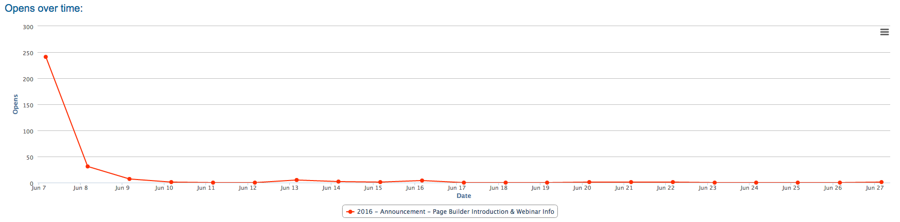 If you ‘mouse over’ the graph at a given point, you’ll see a count of the opens that occurred on that date.