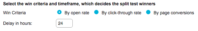 Once this is enabled, you will need to choose a metric for the software to select the winner from and time to delay before the winning email is chosen.