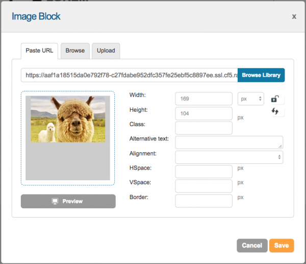 Once you make your changes to the text block, click Save to save your changes or Cancel to disregard them.