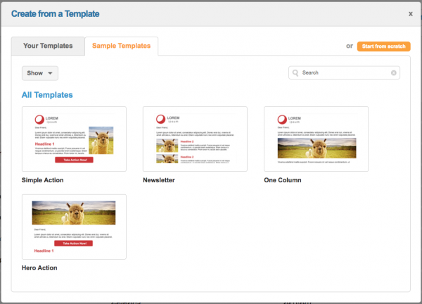 You can use one of the Sample Templates. They are mobile-optimised and built to best practice so that they display your email as intended in different devices, browsers and apps. You can click on them to view more information about the templates.