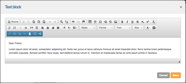 When you edit or create your text block you’ll see the text block editor: