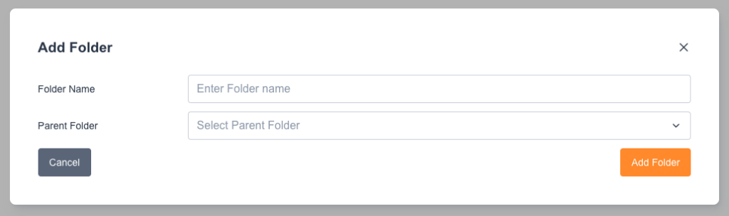 Simply click on ‘Add Folder‘ and a pop-up window will appear for you to fill out if you are just creating a Folder or a Sub-Folder by adding the Parent Folder for it.
