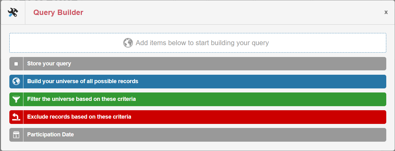 Click the orange “Create new query” button if you do not wish to use a Saved Query. This opens up the query builder, which allows you to use multiple filters to create your audience.
