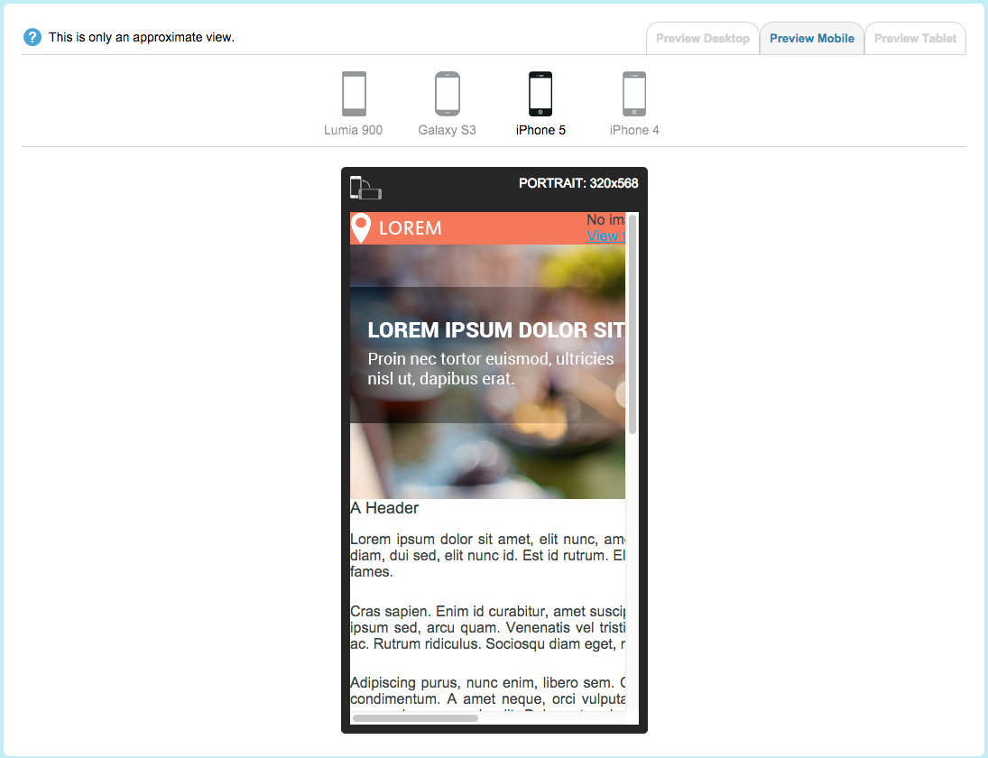 This button not only gives you the web browser preview but you can also see an approximate view of what it will look like on several different mobile phones or tablets.