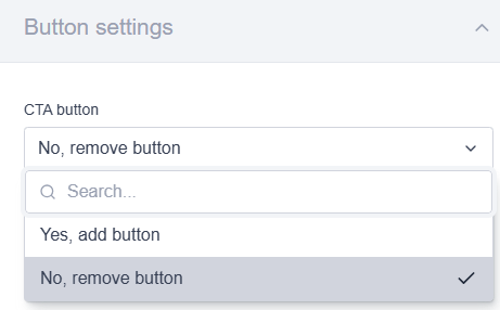 Marketing Tools broadcasts - update to Sample Blocks: CTA buttons in selected sample blocks (Feature panel, Story with image to left, Story with image to right) are now optional and can be removed using additional block settings.