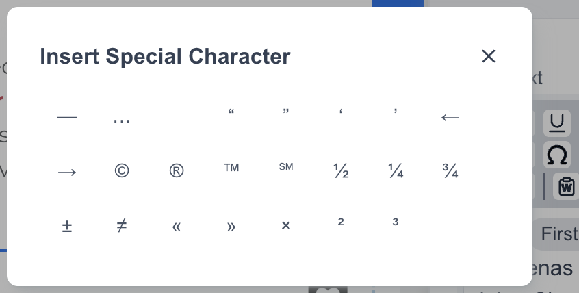 Special characters now supported in Marketing Tools broadcasts: We have added an insert button for special characters like em dash, copyright, registered trademark and others in the Marketing Tools wysiwyg editor.
