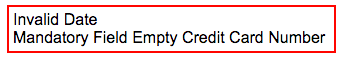 Errors displayed at the top of the page (on submit) are returned by the server, for example if the payment was declined: