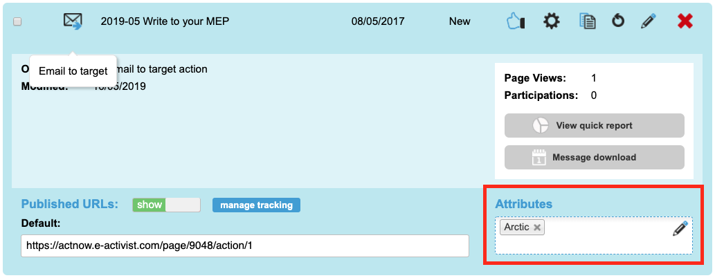 This is so that, using the same example, you can view account level reports for fundraising and filter to view by the ‘year-end’ attribute which will aggregate all of the data for all pages to which you have assigned this attribute. Think of attributes as an aggregate for groups of pages or groups of email campaigns.