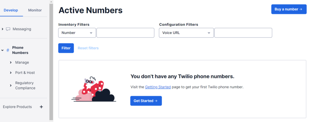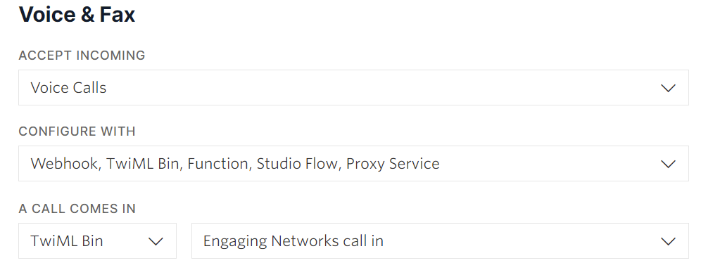 Additionally, it might be worth configuring a voicemail message for your number in case of any incoming calls. To do that, use the TwiMl Bin setting as shown below. You will need to create a new TwiMl Bin in your Twilio account and then select it under incoming call settings.