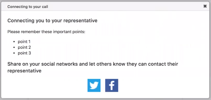 Once the supporter receives a callback to the respective target and completes the call, the thank you email will be sentto the supporter. The thank you email has two extra buttons in: