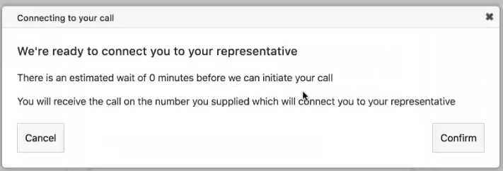 The supporter will click a Connect button to start the process off. This block allows you to decide on the the copy to display to the supporter. You can include estimated wait time, queue size in front of them and asking them to confirm they would like to proceed.