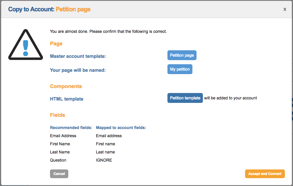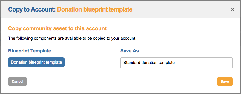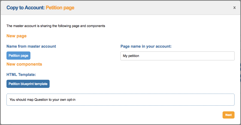 To copy over a blueprint page, click Copy to my account. You will be presented with a new screen:
