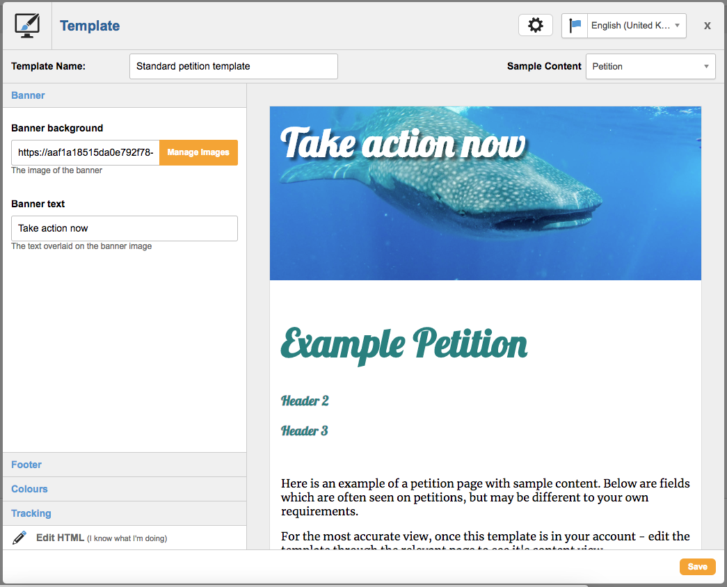 Editable parts will be shown in the left column, so you do not necessarily need to edit any HTML to make it your own. This editor is exactly the same as the one you’ll see when adding Sample Templates (read more here).