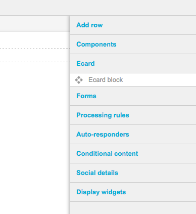 Click on “Ecard” to reveal the Ecard block and drag it into a row on the page.