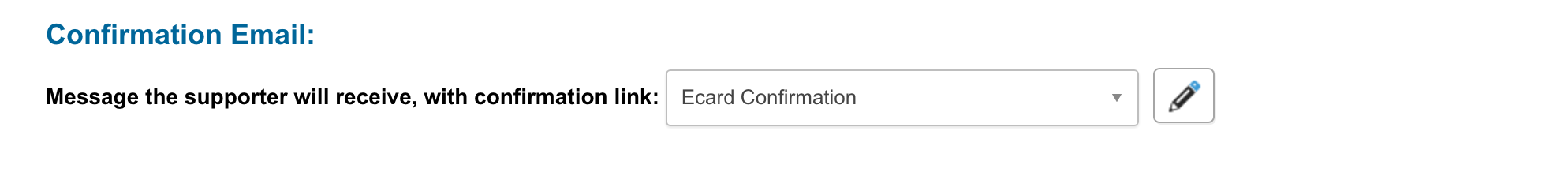 Confirmation Email – this is the message the supporter (the person sending the eCard) will receive, with a confirmation link, confirming they wish to send the Ecard. Once it is confirmed, the eCard will be sent. Note: the confirmation link is valid for one hour.