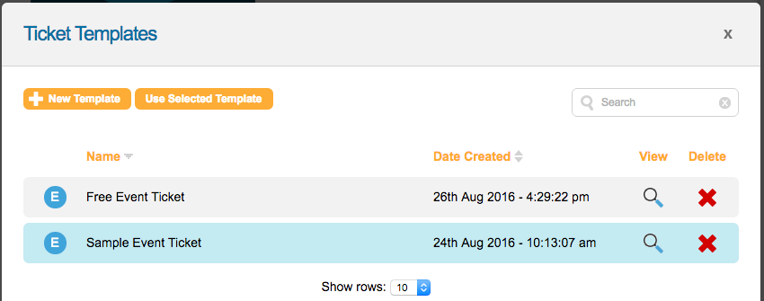 To create a new ticket template, click on the edit icon next to the ticket dropdown menu to open the ticket template library.