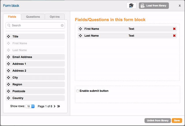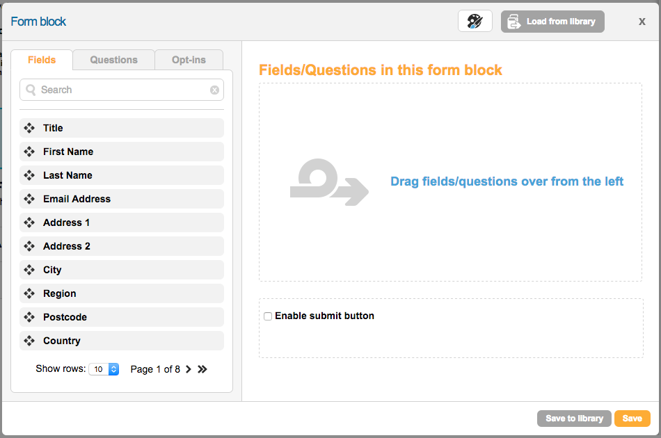 You can also load pre-built form blocks that are shared with other pages in your account by clicking the “Load from library” button at the top of the form block editor