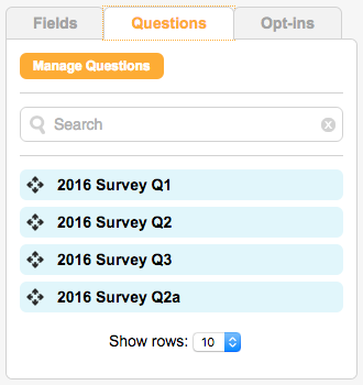 To create a new question, click on the “Manage Questions” button. For detailed instructions on creating questions read the help documentation here.