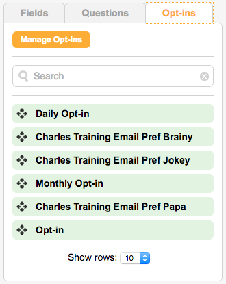 To add opt-in questions to your form blocks, click on the “Opt-ins” tab and drag them into the form block.