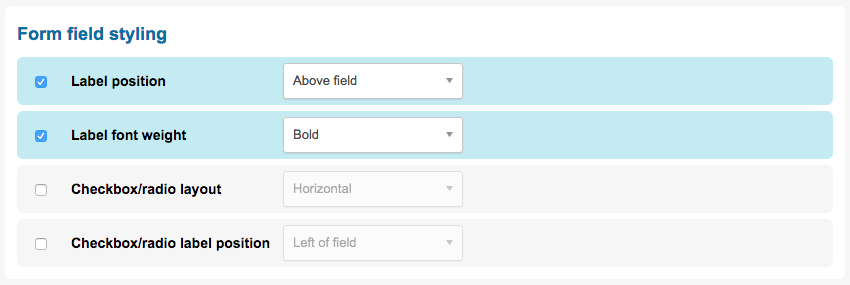 The following styling options are available for form field styles: