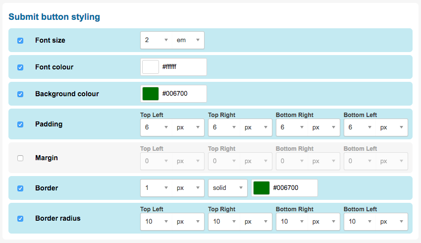 The following styling options are available for submit button styles: