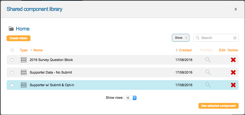 Select the form block you would like to use on the page and click “Use selected component” to load the form block.