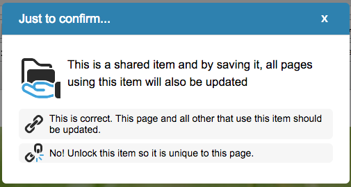 Otherwise, save your form block as normal. A dialog will open confirming that you want to use the linked content that also gives you the option to unlink the content.