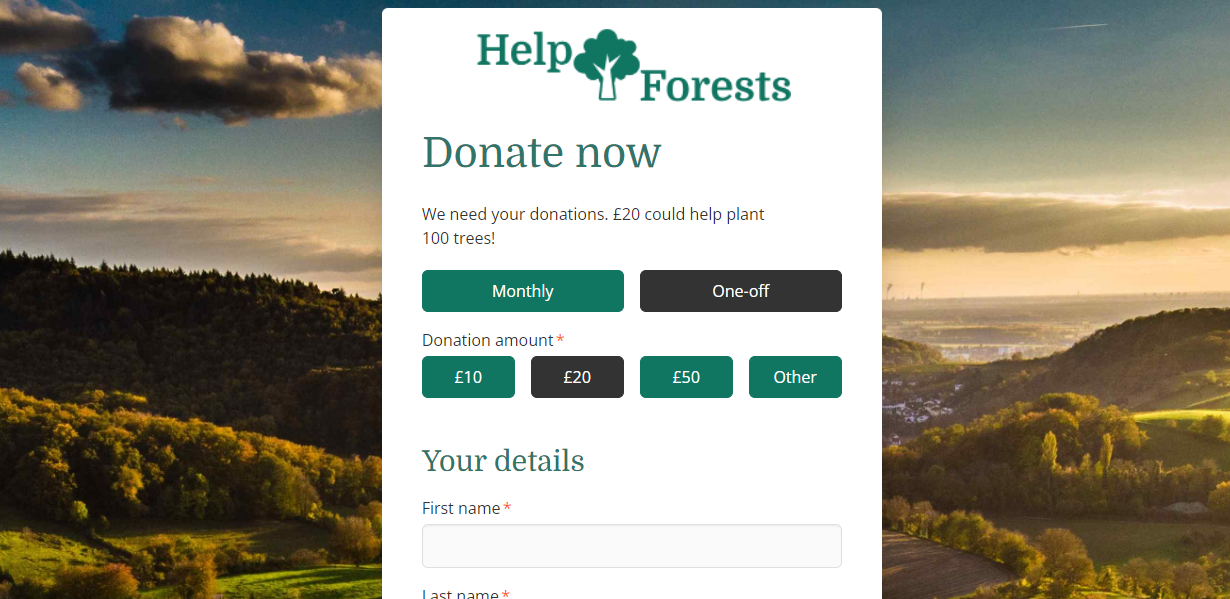 Add amount to end of submit button | If “Yes” is chosen, this will add the selected donation amount after the submit button’s label, set above. For example, if the label is “Give” and the supporter has selected £20, this will display “Give £20” on the button |