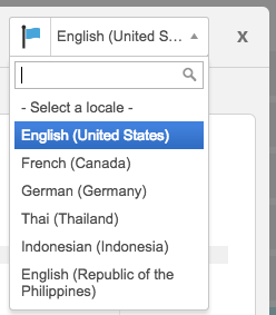 If you have more than one locale set up you have the option to create a locale-specific version of your template. To edit the template for a locale other than you default, click on the locales drop down at the top-right-hand side of the template window and select the locale you wish to edit.