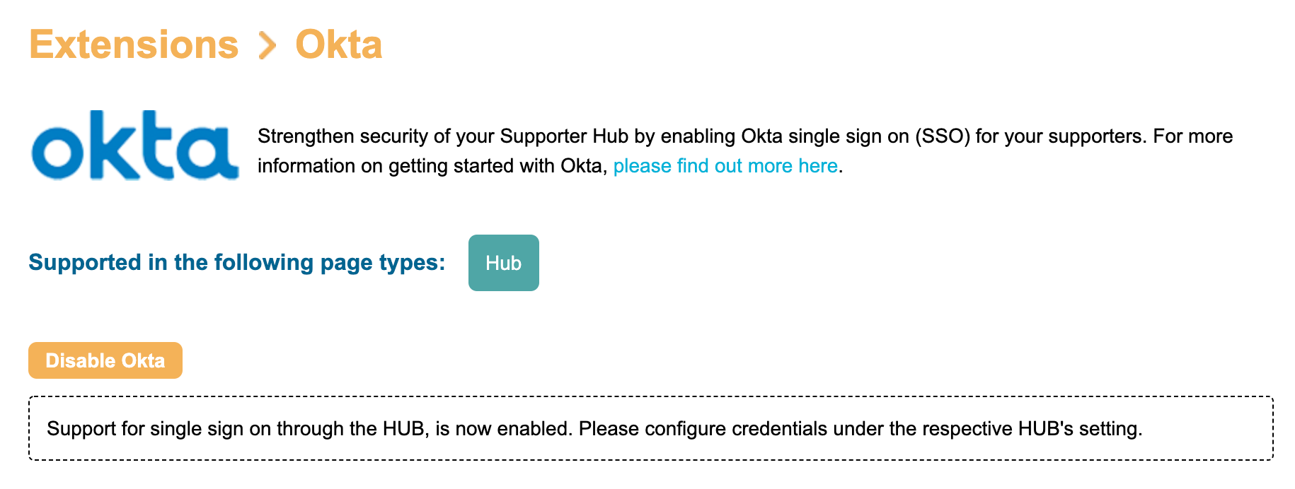 Okta Single Sign On: Supporter Hub