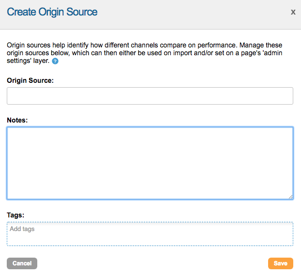 If you would like to manually add new origin source codes just click “New Origin Source” and then fill out the information in the pop up.