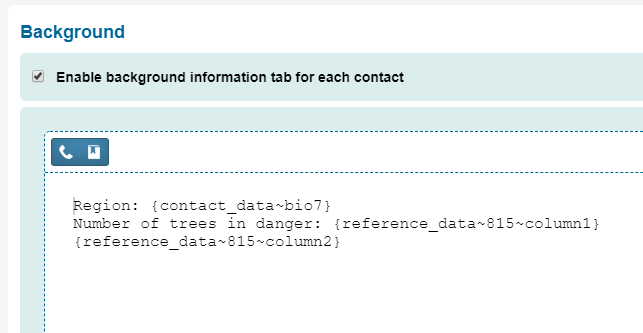 You can add background information to a target block, which allows the supporter to display additional information, including reference data. Access this setting by editing the Form Block and clicking the