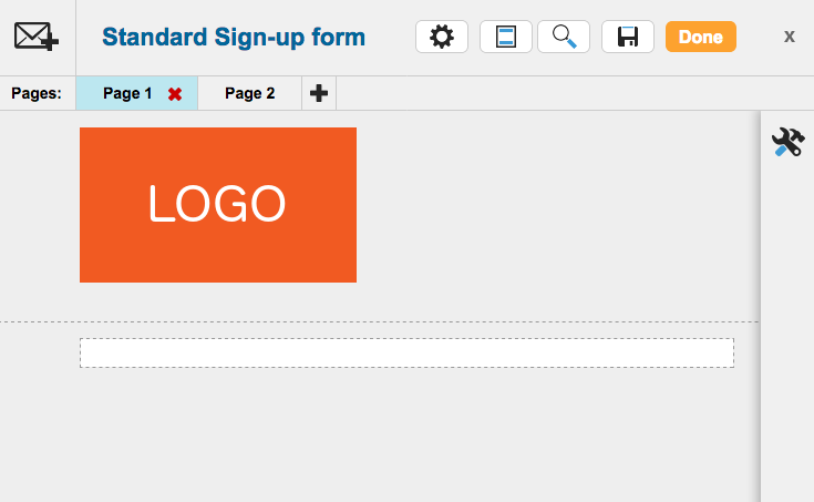 However, you could spread your sign-up page over more pages if you wish. You can add new pages using the + button next to the pages: