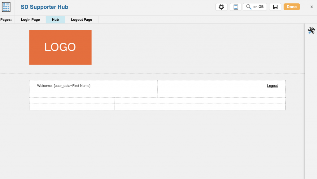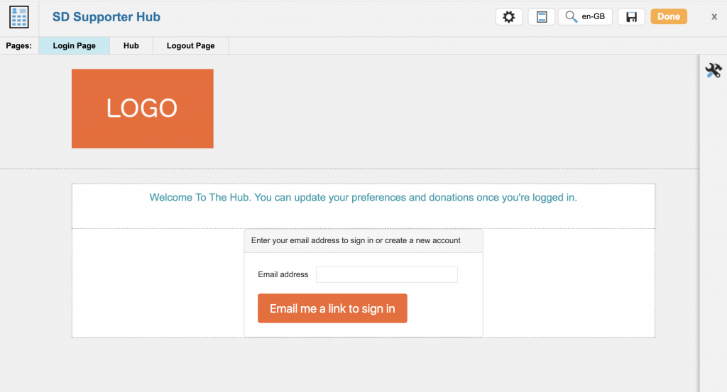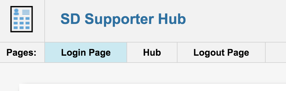 The first page is the supporter login page for your hub, the second page is the where you’ll setup the hub functionality for your supporter to interact with you, and lastly you’ll need to setup the Logout page.