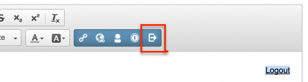 We also add a Logout link too. You can move this around the page although we don’t recommend removing this entirely since users need a way to logout and end their hub session. You can add custom logout links in page-builder text blocks using the blue custom items in the WYSIWYG menu bar.