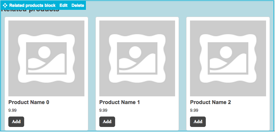 The “Related products” block is only available for Symbolic Giving pages in the Product View section in page-builder. The block is already added when you first set up your site, but if it is accidentally removed you can add it again by going to the right-hand toolbar then to Symbolic Giving > Related products block.