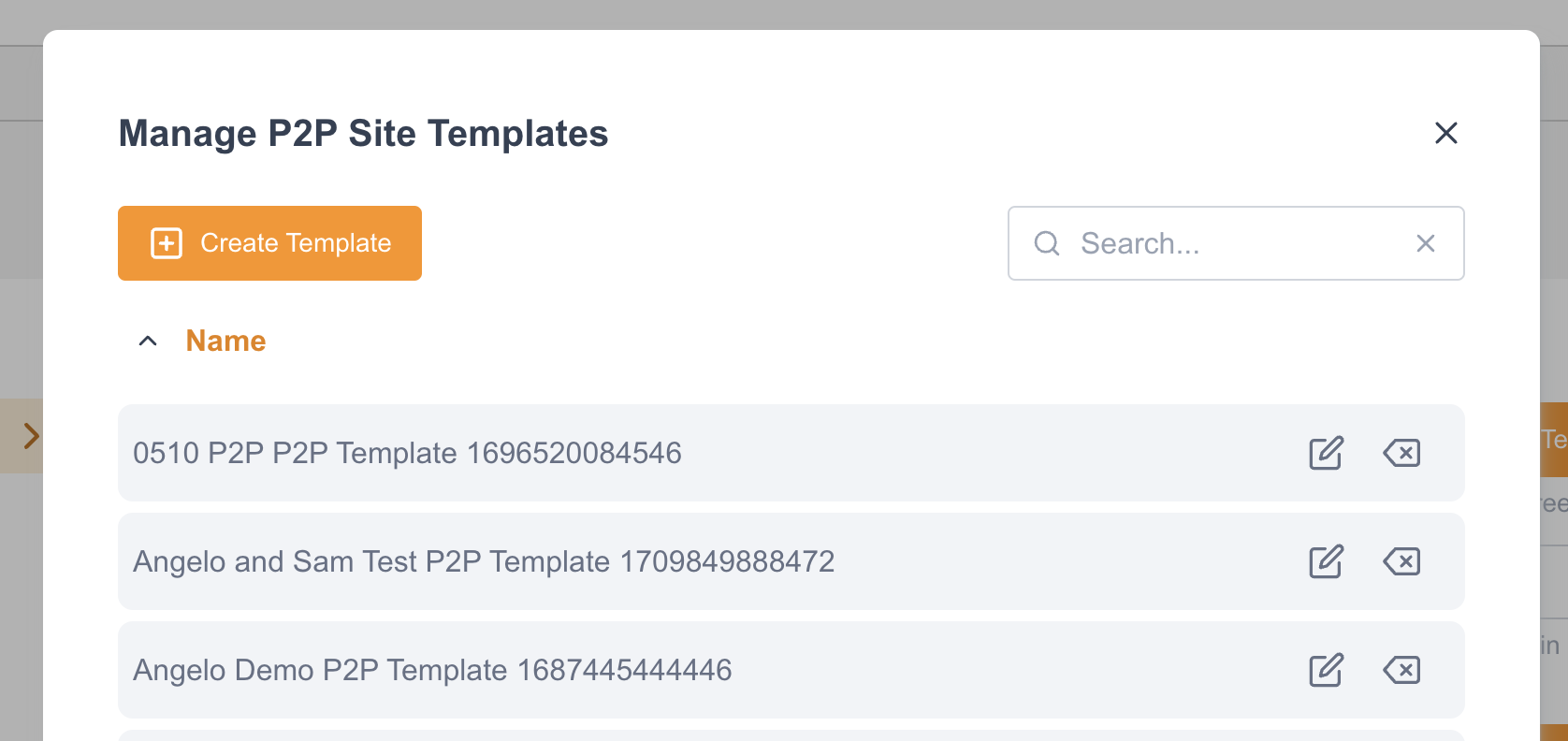 existing templates or delete