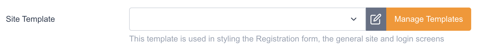 Site template | Template or page wrapper that styles the registration form, general site, and login screens of the site |